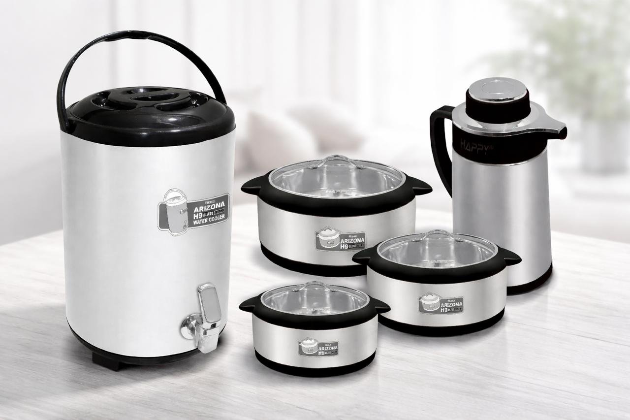 Upgrade your kitchen and dining experience with the Arizona Premium Insulated Kitchen Set, designed for style, durability, and everyday convenience. Crafted with a sleek stainless-steel body and elegant black accents, this set keeps your food and beverages fresh, hot, or cold for hours.