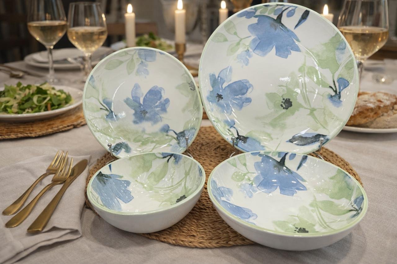 This elegant breakfast set features a soft blue and green floral design that gives a fresh and classy look to your dining table. Made from high-quality ceramic material, this set is perfect for daily breakfast use as well as serving guests. The smooth glossy finish enhances durability and gives a premium feel. This set is designed to make your table setting look stylish and attractive.