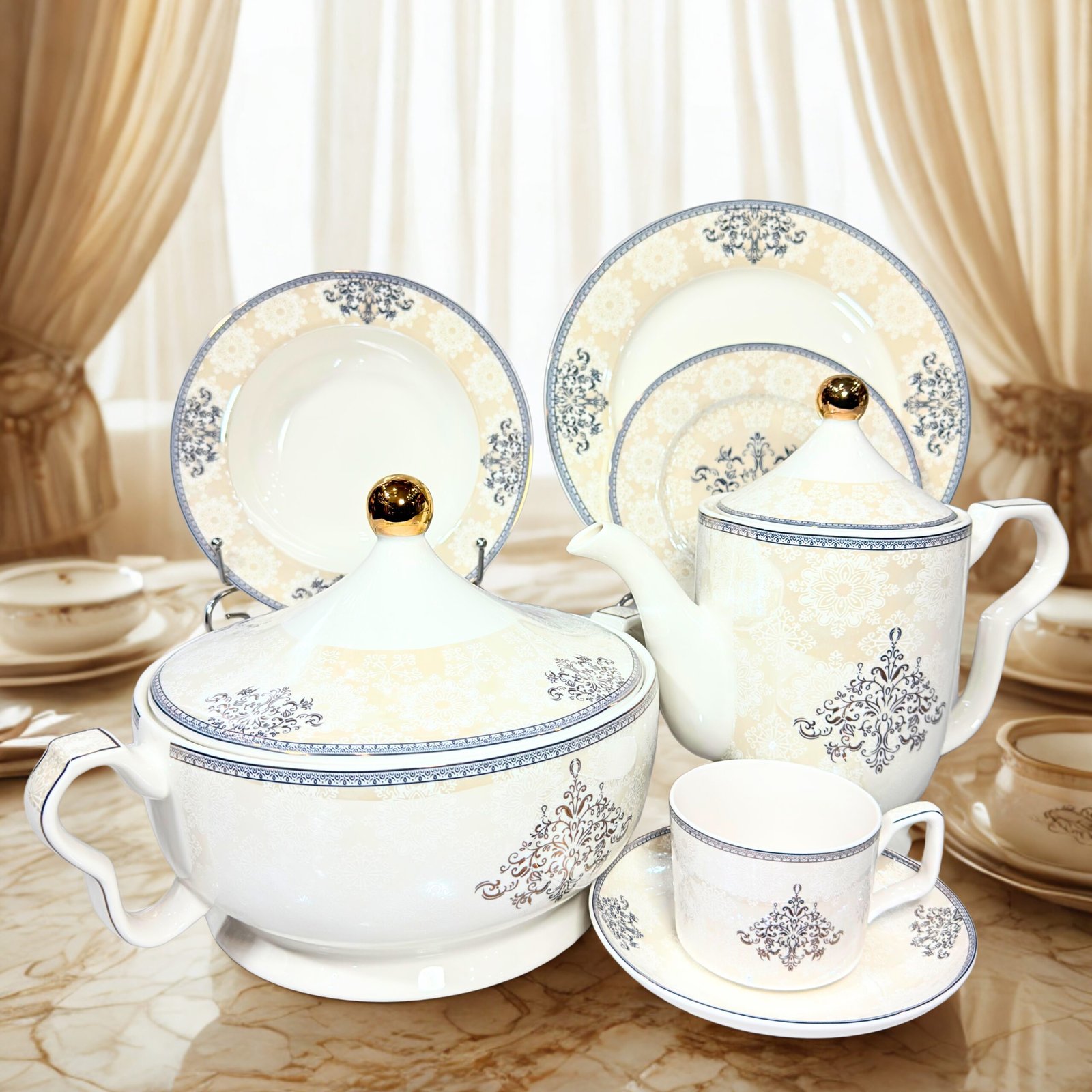 Introduce refined sophistication to your dining experience with our 61-piece Bone China Dinner Set. Crafted with precision and featuring a classic yet timeless design, this set is perfect for both everyday meals and formal gatherings. Whether you’re entertaining guests or enjoying a family dinner, these meticulously crafted pieces will surely elevate the ambiance of your dining table.