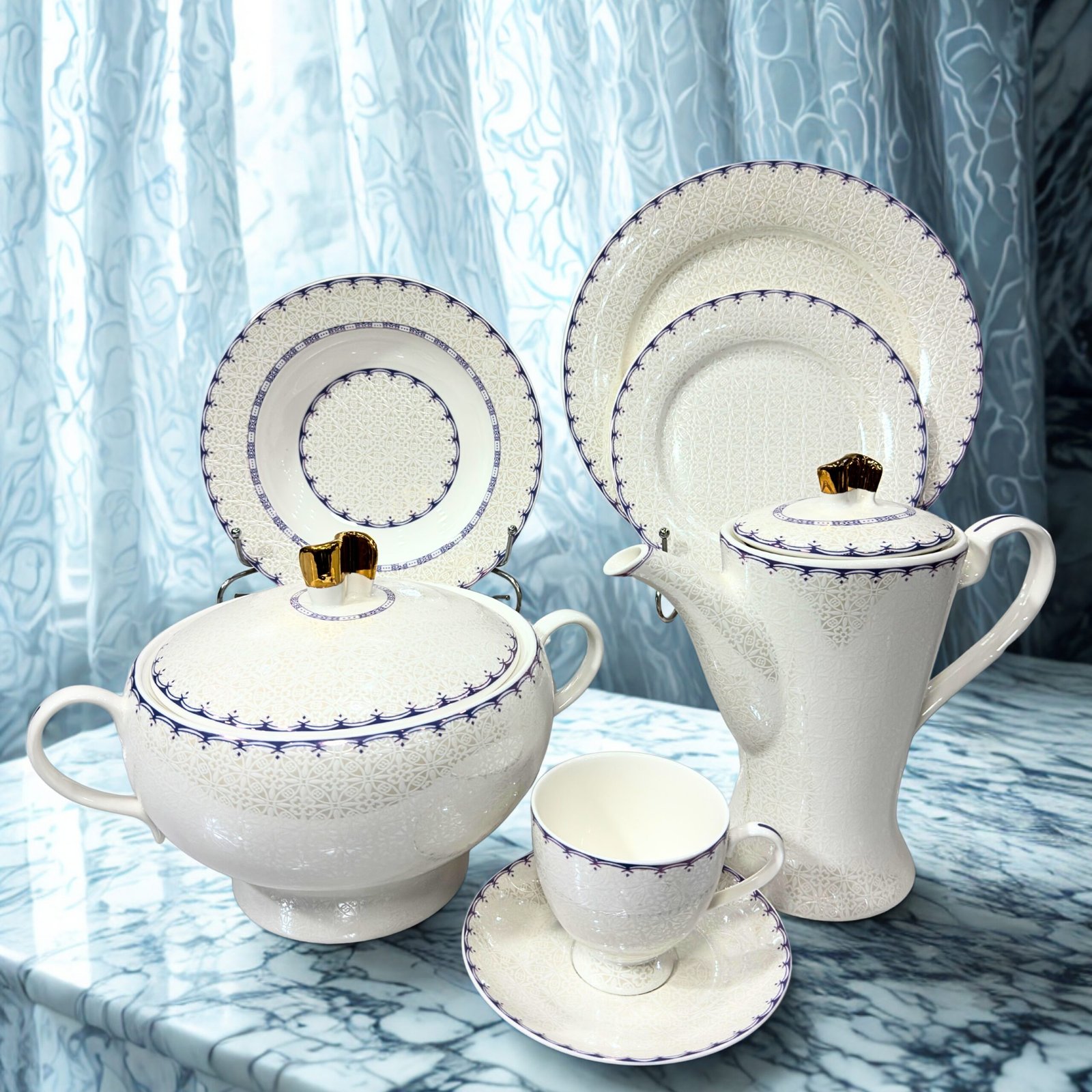 The Dinner Set Bone China 61Pc is the epitome of sophistication and durability, designed to elevate your dining occasions. Crafted from premium bone china, this set is renowned for its exquisite finish, lightweight feel, and impressive durability. Whether you’re hosting a formal dinner party or enjoying a casual family meal, this dinner set brings a touch of class to every table.