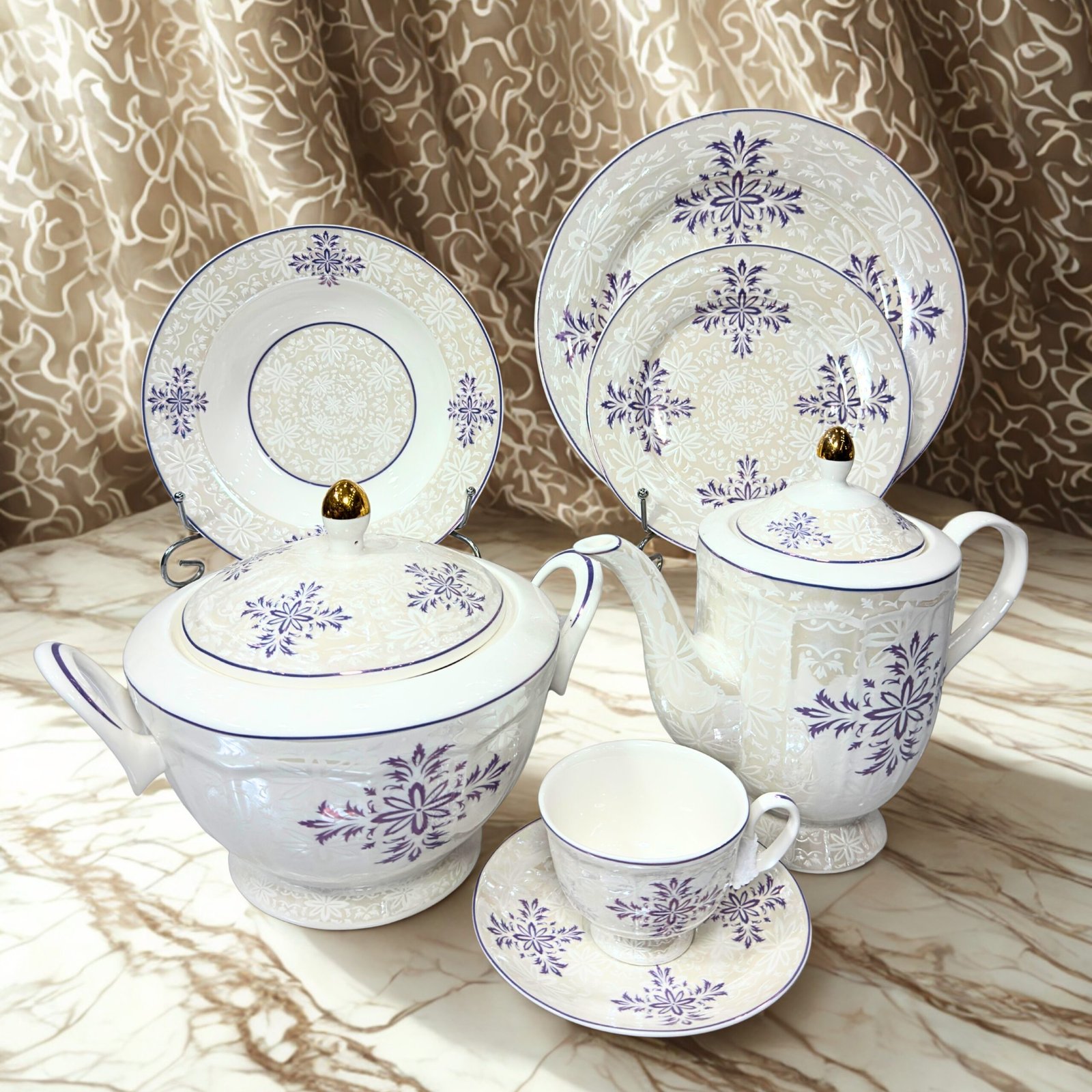 The Dinner Set Bone China 61Pc is the epitome of sophistication and durability, designed to elevate your dining occasions. Crafted from premium bone china, this set is renowned for its exquisite finish, lightweight feel, and impressive durability. Whether you’re hosting a formal dinner party or enjoying a casual family meal, this dinner set brings a touch of class to every table.