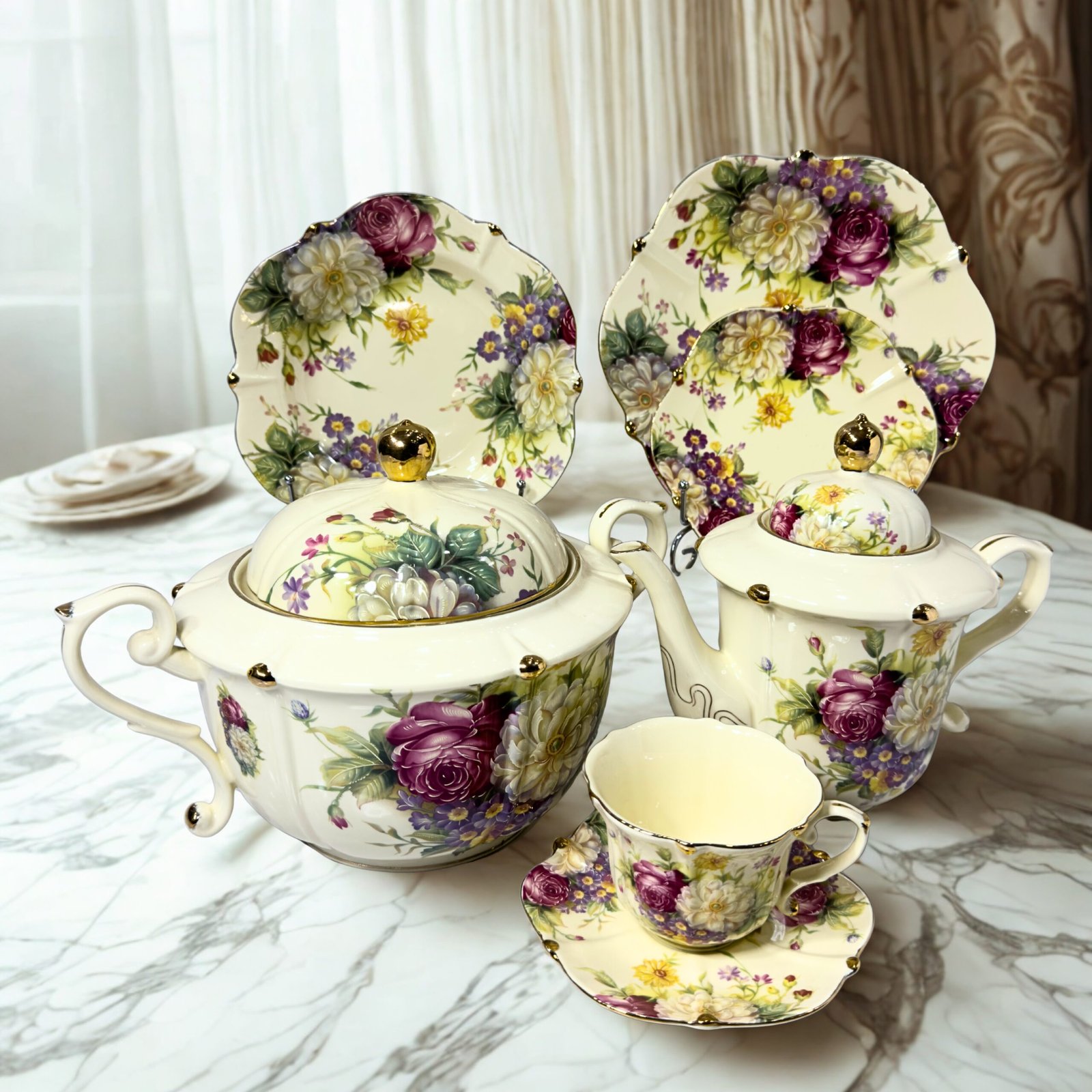 This 61-piece dinner set provides everything you need to host a memorable dining experience. It includes dinner plates, salad plates, soup bowls, dessert plates, serving dishes, and more. Designed to cater to families of all sizes, this complete dinnerware set ensures you have the perfect piece for every course. Whether it’s a festive celebration or an intimate dinner, the Dinner Set Fancy Bone adapts effortlessly to your needs.