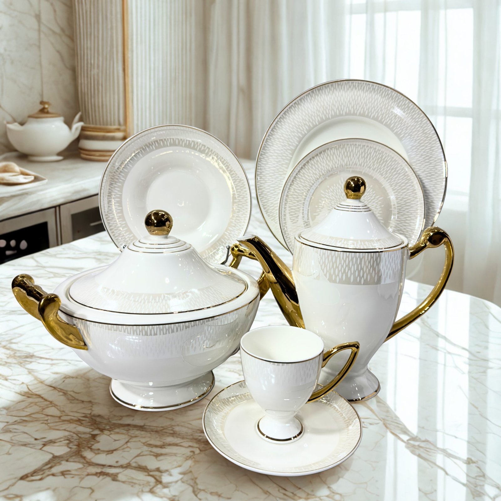 The Dinner Set Fancy Super Bone 61Pc is more than just a dinnerware set – it’s a statement of style and sophistication for your dining table. Expertly crafted with high-quality super bone material, this 61-piece dinner set is the perfect union of durability and elegance, designed to impress your guests while elevating your everyday meals. Whether you’re hosting a lavish dinner party or enjoying a quiet family meal, this set has everything you need to serve in style.