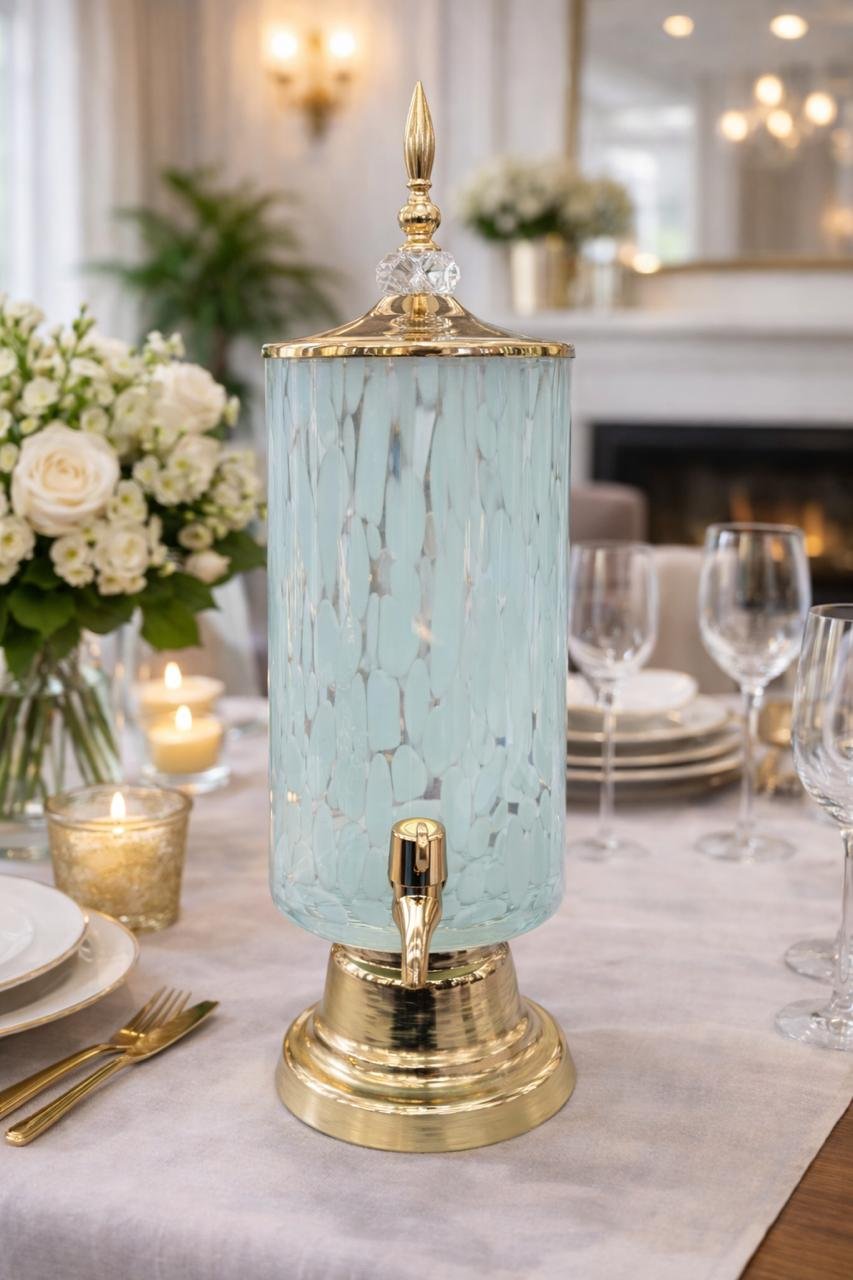 Crafted from high-quality glass, this luxury beverage dispenser is designed for elegant and convenient serving. Ideal for water, juices, and cold beverages, it features a sturdy base and smooth dispensing tap for effortless use. Its timeless design makes it perfect for everyday dining as well as special occasions, adding a refined touch to any table setting.