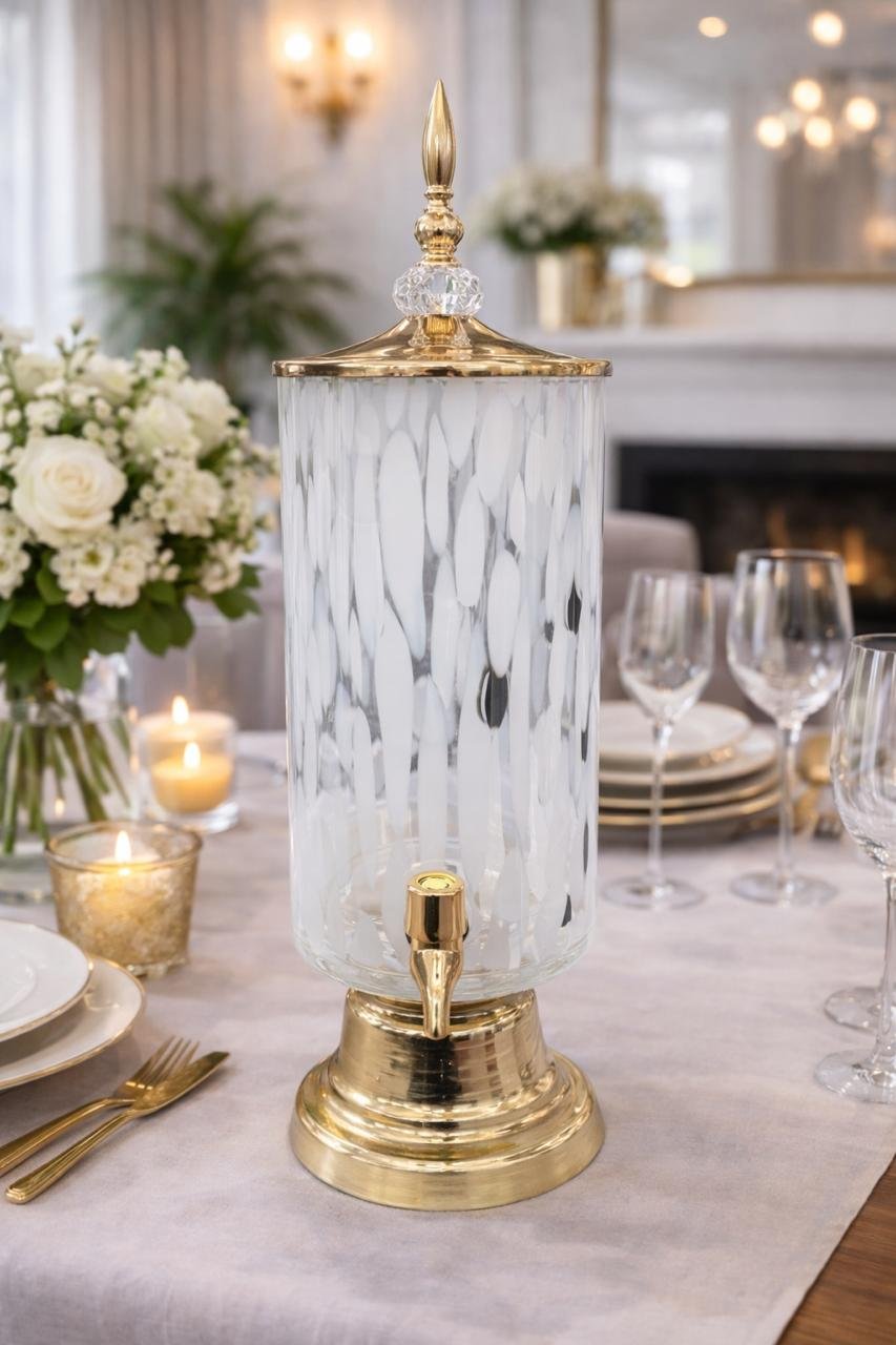 Crafted from high-quality glass, this luxury beverage dispenser is designed for elegant and convenient serving. Ideal for water, juices, and cold beverages, it features a sturdy base and smooth dispensing tap for effortless use. Its timeless design makes it perfect for everyday dining as well as special occasions, adding a refined touch to any table setting.